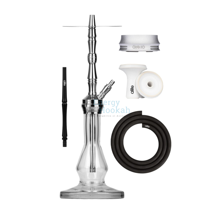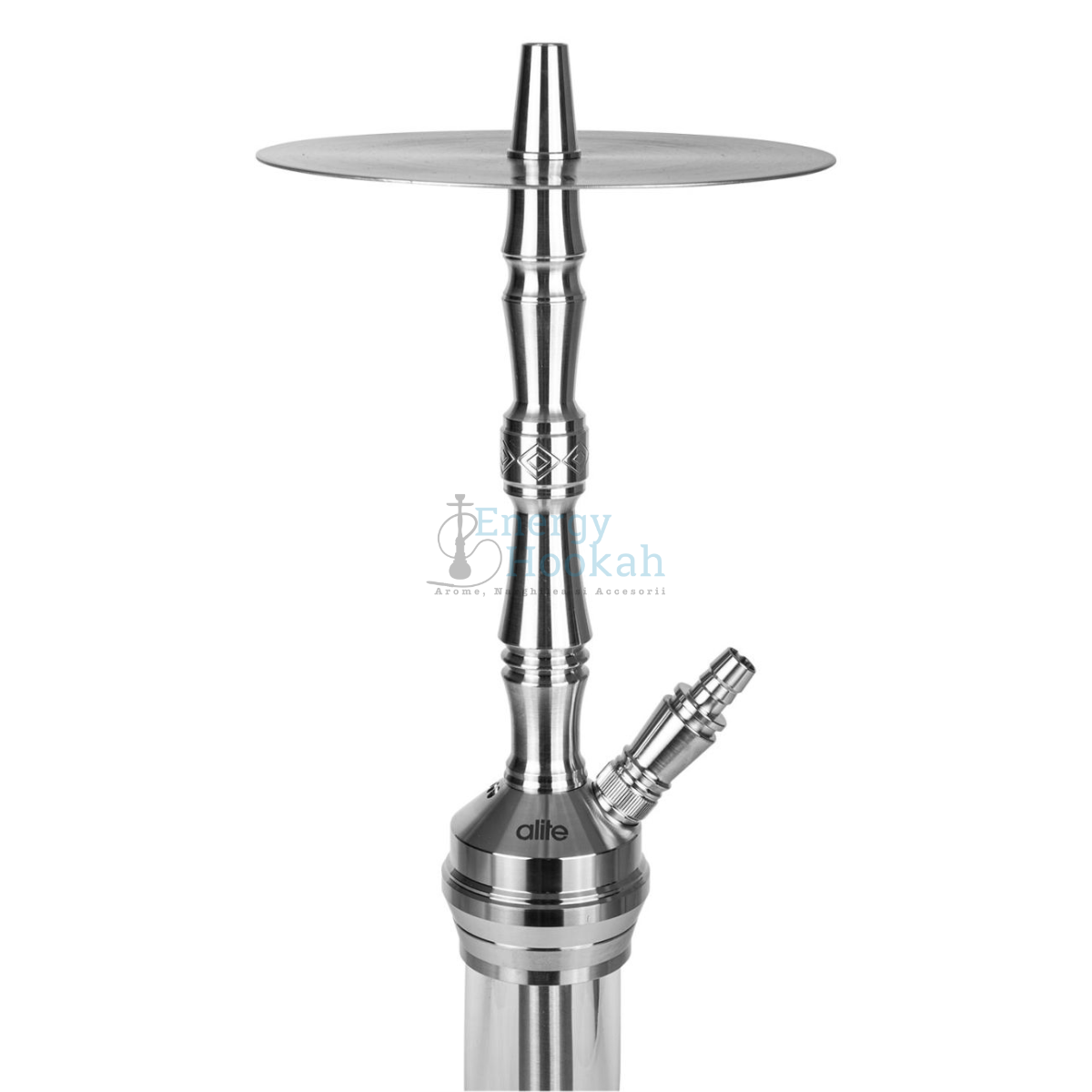 alite Lounge Swiss — narghilea din oțel inoxidabil, cu bază de sticlă pe filet și tiraj deschis. Vine împreună cu: furtun din silicon, muștiuc din aluminiu, creuzet din ceramică și HMD ONMO argintiu. Colector de melasă integrat și tavă pe ground joint pentru curățare rapidă. Piese compatible cu toată gama alite pentru upgrade ușor.
